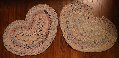Primitive Braided Folk Art Heart Mat Set country placemat Handmade Multi color
