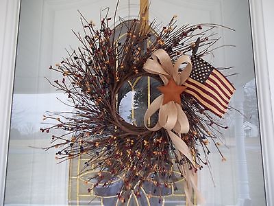 Title (ebay affiliate link): Primitive~Americana~ Twig~ Door/Wall~ Wreath~ Flag~Rustic Star~.99 START BID
