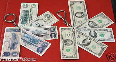 Title (ebay affiliate link): VINTAGE PAPER MONEY PLASTIC KEY CHAINS LOT - RETRO 1977 & CONFEDERATE 1864