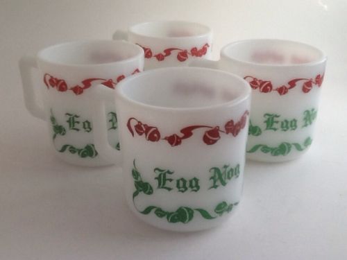 Title (ebay affiliate link): Vintage Anchor Hocking Holiday Egg Nog Mugs W/ Jingle Bells Milk Glass EUC