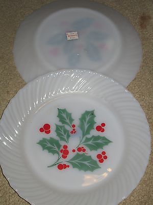 2 PC SET VINTAGE Chrsitmas HOLLY & BERRIES CHRISTMAS MILK GLASS plate woolworths