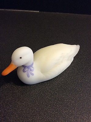 Title (ebay affiliate link): 5" Fenton White Satin Milk Glass Duck Hand Painted and Signed S. Stephens MINT