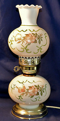 Vintage Hedco GWTW Milk Glass Parlor Boudoir Lamp with Pink Poppies