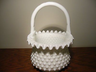 Vintage Fenton Hobnail White Milk Glass Basket