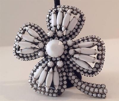 Title (ebay affiliate link): LARGE Milk Glass Flower or Four-Leaf Clover Brooch, Pin, Prong-Set / Many Stones