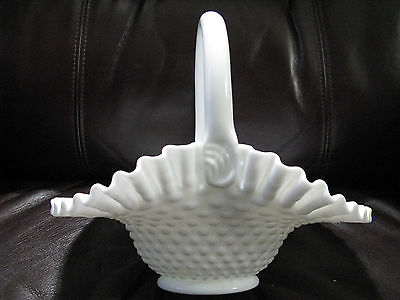 Title (ebay affiliate link): Vintage #3830 Fenton White Milk Glass Hobnail 10 inch Bride's Basket