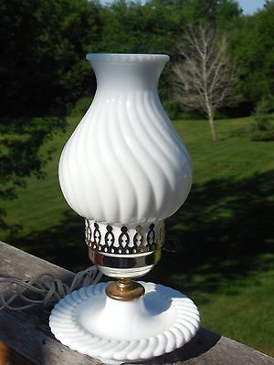 Vintage Swirl MilkGlass Hurricane Small Table Lamp