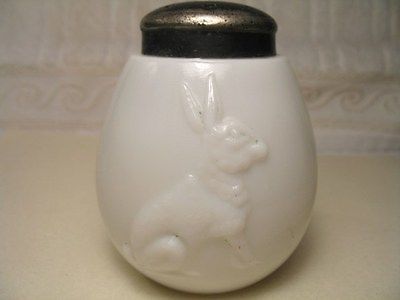 ANTIQUE RAISED BUNNY RABBIT MILK GLASS SHAKER