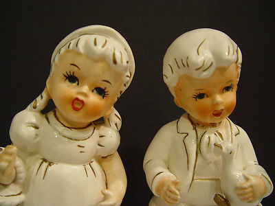 PAIR boy girl goose Hummel inspired 8 ins. porcelain figures Made in Japan NICE
