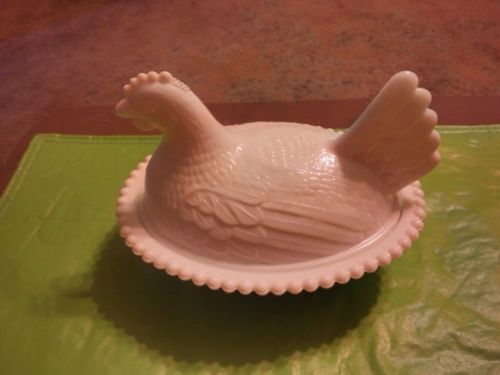 WHITE Milk glass Hen on a Nest Candy Dish-Flaws