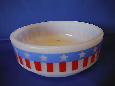 Vintage Milk Glass Bowl Patriotic Stars Stripes Red White Blue American Flag 5"