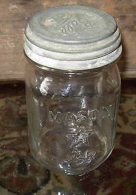 ORIGINAL Vintage Mason w/ STAR Embossed Pint Jar w/Correct Zinc & Milk Glass Lid