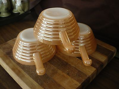 Title (ebay affiliate link): Lot Of 3 Vintage Fire King Peach Luster Milk Glass Handled Bowls Soup Chili E.C.