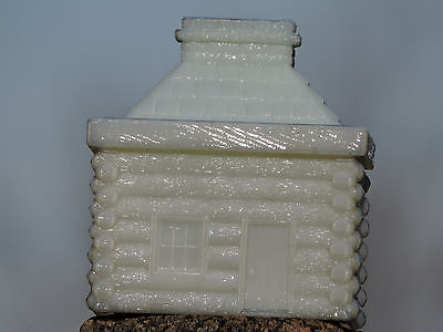 Antique WESTMORELAND CO.Milk Glass Log Cabin Mustard Bank GRAPEVILLE,PA.
