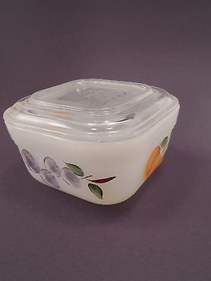 Vintage Anchor Hocking Fire King Fruit Pattern Milk Glass Refrigerator Dish