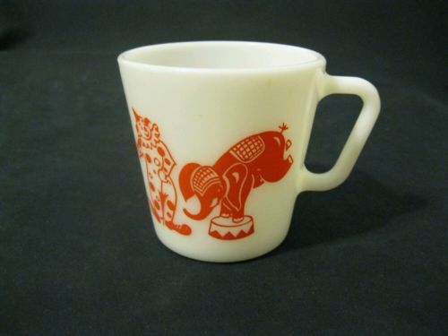 Vintage Pyrex Milk Glass Circus Animals/Clowns Mug