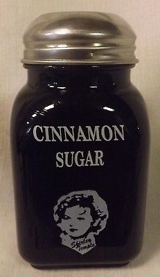 Title (ebay affiliate link): Black Milk Glass Stove Top Shaker w/ Shirley Temple - CINNAMON SUGAR