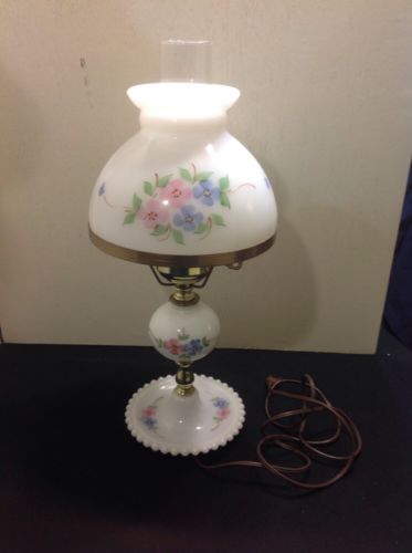 Title (ebay affiliate link): Vintage Hobnail Milk Glass Hurricane Lamp Light Leaves White Painted Globe