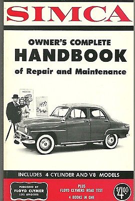 Title (ebay affiliate link): VINTAGE 1960's SIMCA Owner's Handbook 4 Cylinder & V8