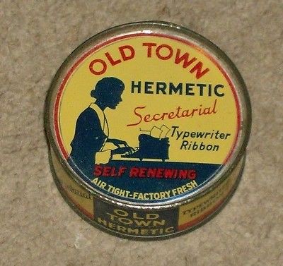 Title (ebay affiliate link): Vintage Unopened Old Town Hermetic Secretarial Typewriter Ribbon Tin Sealed