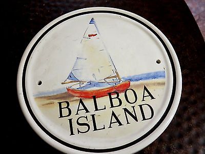 Vintage Original Balboa Island Sailboat 10.5" Porcelain Sign