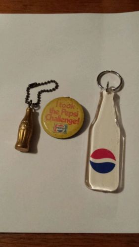 Title (ebay affiliate link): 3 Piece lot of small vintage collectibles Coca Cola & Pepsi Keychain & Buttons