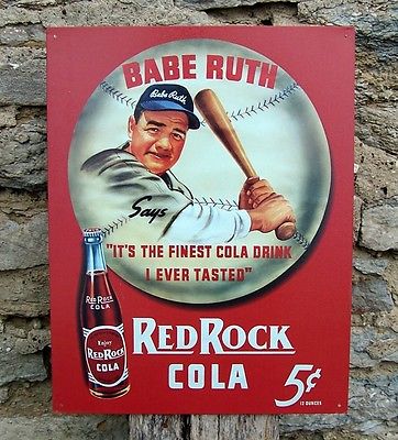 Title (ebay affiliate link): Antique Look Red Rock Cola Ad Babe Ruth Baseball Tin Sign Retro Wall Decor USA