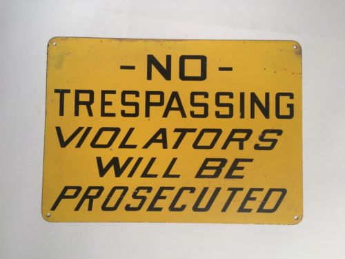 Title (ebay affiliate link): LARGE VINTAGE METAL SIGN NO TRESPASSING - Heavy Steel -not Aluminum
