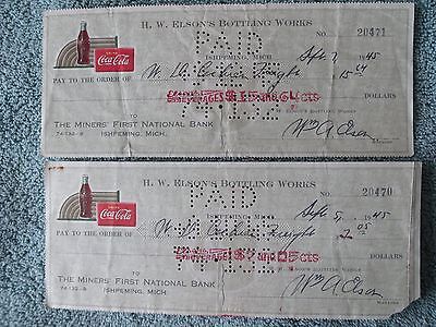 Ishpeming, Michigan Coca-Cola/Elson's Bottling, Lot of 2 Checks 1945