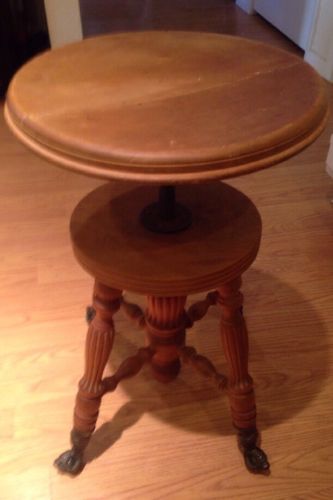 Title (ebay affiliate link): Antique wood Piano organ stool glass ball claw foot.adjustable height eames