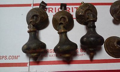ANTIQUE WOOD & BRASS TEAR DROP DRAWER PULLS