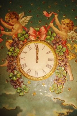 Title (ebay affiliate link): OLD HOLIDAY NEW YEAR postcard ANGELS Antique Clock 1906