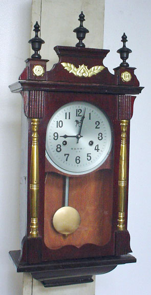 Title (ebay affiliate link): ANTIQUE 3 FINIAL BRASS COLUMN SIDE REGULATOR WALL CLOCK