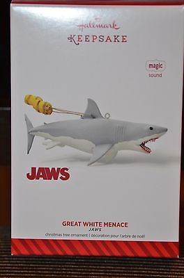 Title (ebay affiliate link): HALLMARK 2014 Keepsake JAWS Movie Shark Great White Menace Magic Ornament MIB