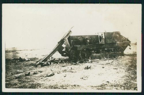 Title (ebay affiliate link): French ? Destoyed tank WWI ww1 war original old c1915 postcard