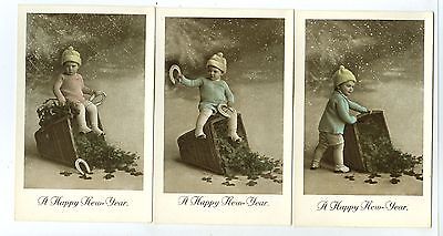 3 of 6 Hand Painted, Cute Little Boy with Basket of 4-leaf, "A Happy New-Year"..