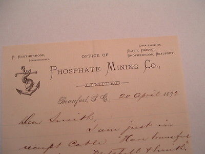 1892 "Beaufort,South Carolina"Brotherhood family,Mining Co.,handwritten letter!