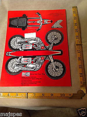 RARE RARE Antique Champion Spark Plug Popout Motorcycle Poster Print Toy