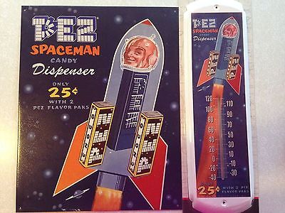 Pez Spaceman Metal Sign and Thermometer