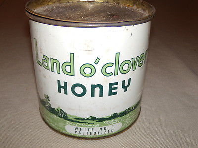 Title (ebay affiliate link): VINTAGE LAND O CLOVER ART DECO HONEY TIN WITH LID, TORONTO CANADA