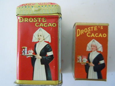 SUPERB DROSTE CACAO SAMPLE DUTCH 1,5/8 "TIN 1950s BOITE WITH CARTON BOX INSIDE