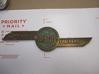 BRASS NAME PLATE BELOIT TRU- TENSION HIT MISS SIGN BRASS BADGE TAG