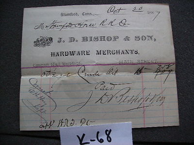 Title (ebay affiliate link): J. D. BISHOP & SON HARDWARE STAMFORD CT 1887 BILL TO STAMFORD HORSE RR LOT K-68