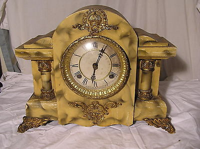 Title (ebay affiliate link): ANTIQUE WATERBURY COLUMN MANTLE CLOCK 11 3/4 INCHES TALL, 15 1/2 INCHES WIDE