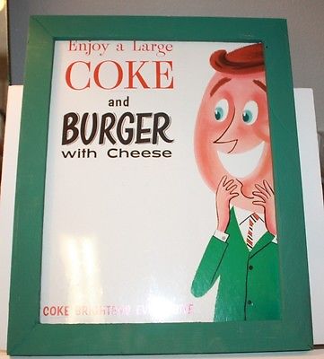 VINTAGE COKE and BURGER CARDBOARD SIGN