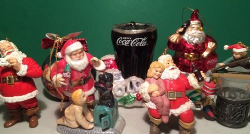 Title (ebay affiliate link): 7 Piece Coca Cola Christmas Ornaments Glass And Resin Santas