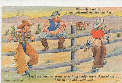 A6825 1940 LINEN COMIC HUMOR POSTCARD EROTIC NUDE SEMI COWGIRL