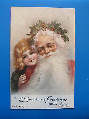 Christmas Santa With Girl Postcard - Raphael Tuck and Sons 1905 Lithograph