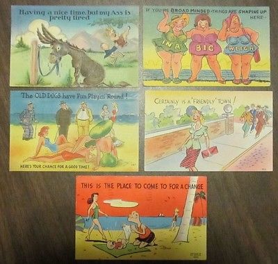 Title (ebay affiliate link): Vintage 40s Unique Old LINEN Adult Male Humor Postcard Lot of (5) 3 Unused NEAT!