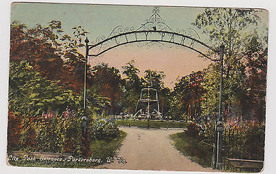 Vintage Post Card 1914 City Park Entrance Parkersburg W Va front Corry Pa.
